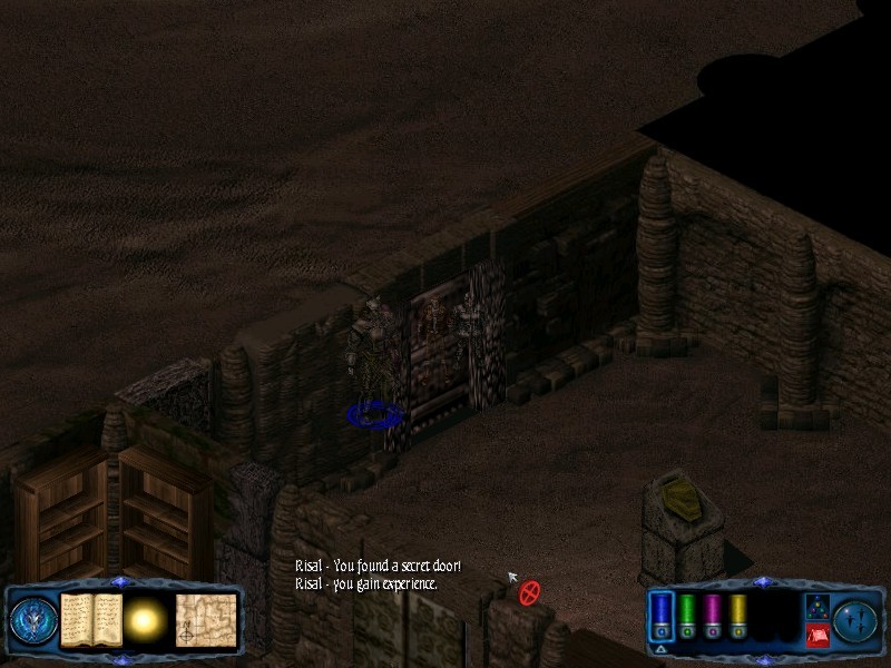 Now take the more northerly door out and circle the stair building eastwards, following it around ot the south and then west. That done, return to the NE corner where the junction leads N and follow this path until it turns eat. Along the eastern passage you will find a door to the north and one to the south. Through the southern door is a place to rest. Through the northern door you will find a spectre. The spectre has the ability to drain levels. This is an extremely tough opponent for a low level group to take on, so I have opted to leave it until later.