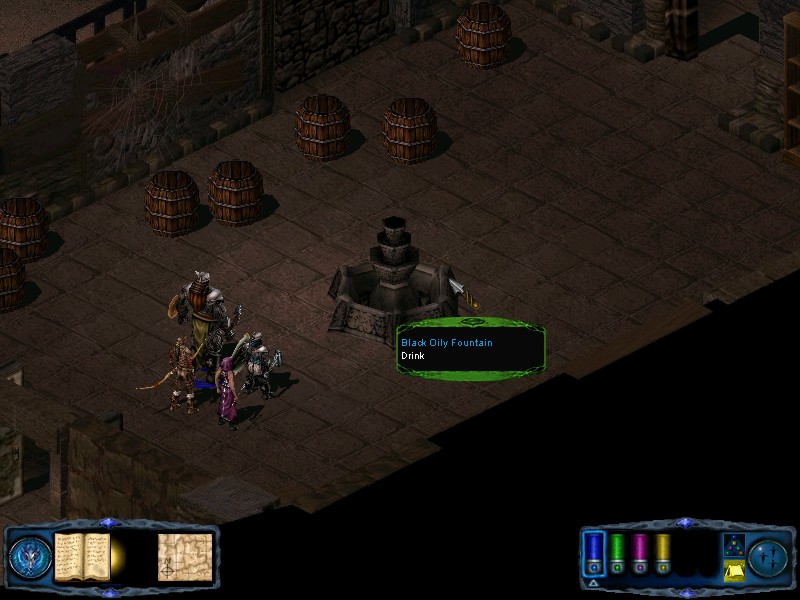 Take the western door first. In the room beyond are a keg of transparency (NW wall), a keg of blinking (NW wall) and an empty fountain. There is another door to the NW where 4 orc ghouls are waiting. As with ghouls, orc ghouls can stun so try and catch them in the doorway as they can be nasty if they surround you. In the room they were in you find a healing keg.