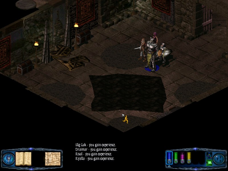 Leave the room again and head NW to find a gate. Open it to trigger 3 zombies and a master shadow. In the room beyond there are two chests holding boots of high wisdom, 2 scrolls of cure critical wounds and some gold.