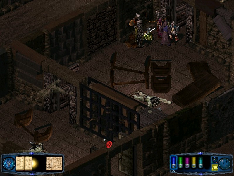 This area has now been thoroughly explored, so it's back to the skinny passage, past the three empty chests to an opening in the east of the room. Take the door to the north to find the first of a serious of rooms strewn with bodies. Search this complex of rooms to find gold and two common bows, working your way east until you find the room housing the dead undead. From there go through the door to the north and take the slave of remove paralysis and the potion of full healing from the bookcase.
