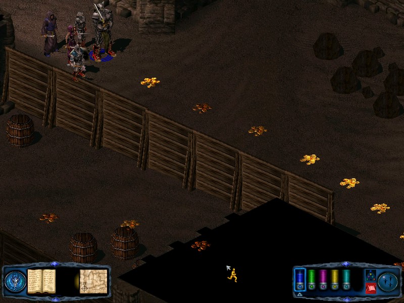 The door to the south is opened by the silver key you just picked up. Inside the room are two barrels containing ring of strength and a ring of wisdom. Move back out into the corridor and head south until you reach another door. This door is opened by the emerald key to reveal two wells with gold in and a barrel holding a ring of charisma. |