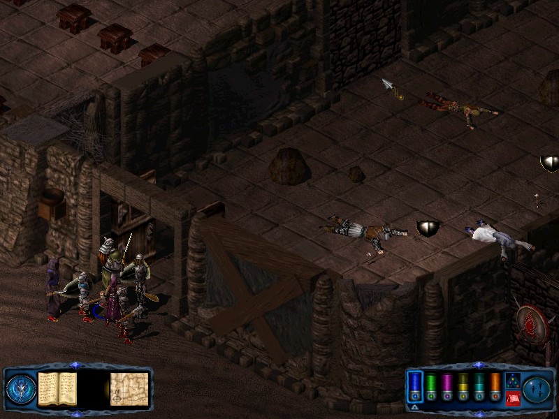 Exit that room and return to the doors in the SE. Head south once through them, then go through the double doors to the east. You will find yourself in a room full of dead clerics and common weapons. There's nothing to do here, so go back out and follow the outer wall around to the back of the room. When you reach the area oposite the double doors you will be attacked by 2 Skeletom Lords, who are soon joined by 2 skeleton elders and 2 ancient zombies. When defeated this group drops a potion of serious healing.