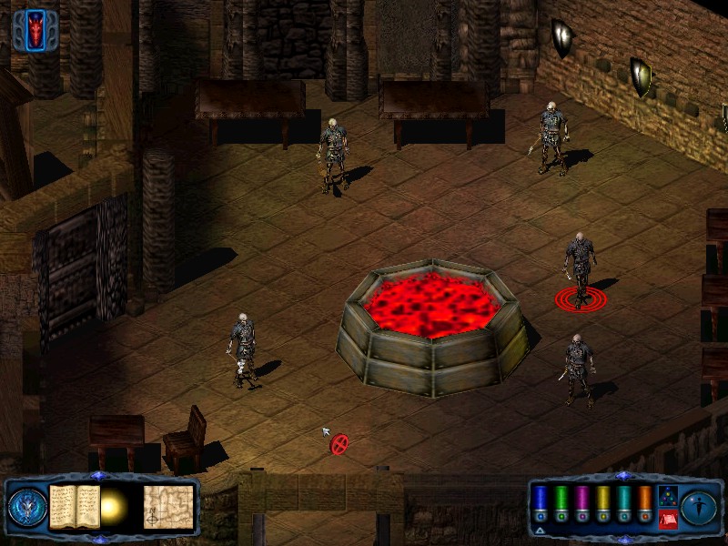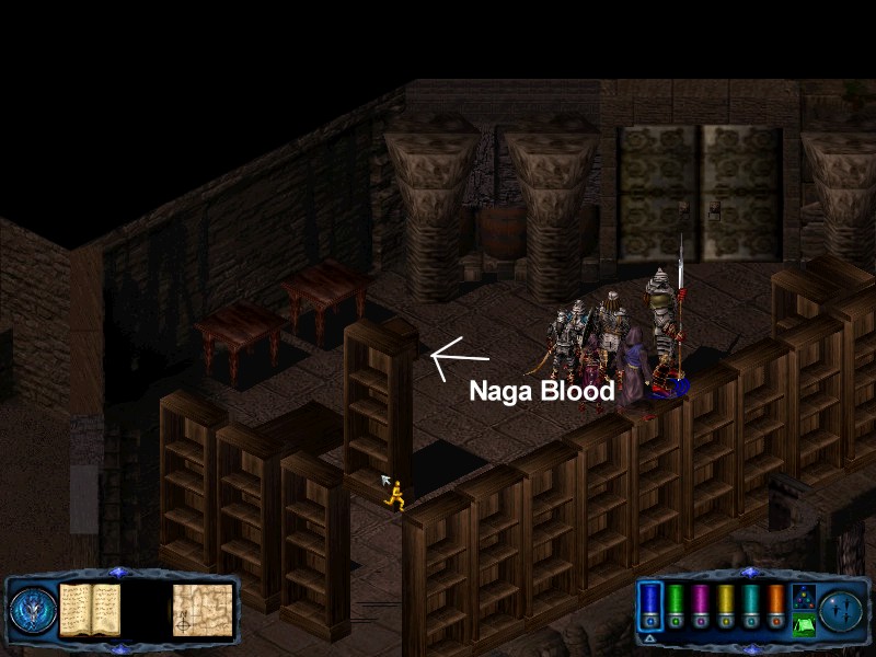 Once they're dead, exit the empty room again and move south. You will pass a door to the east that leads to a room housing stairs up to the Halls of Light. Explore this room and the area around it before heading back to the last junction you passed. This time take the east passage. This passage is lined with fire spitting barrels so be careful! The door to the south leads to an empty room where you can rest. The room beyond the north door holds a route to Stillwater and a chest containing a vial of Naga Blood.