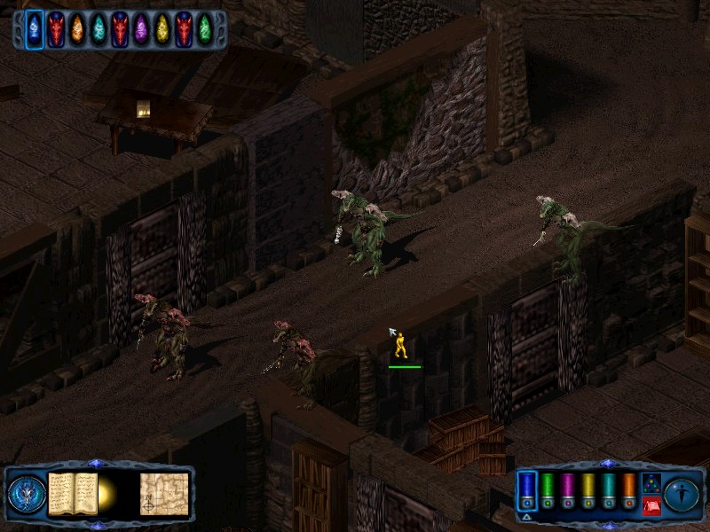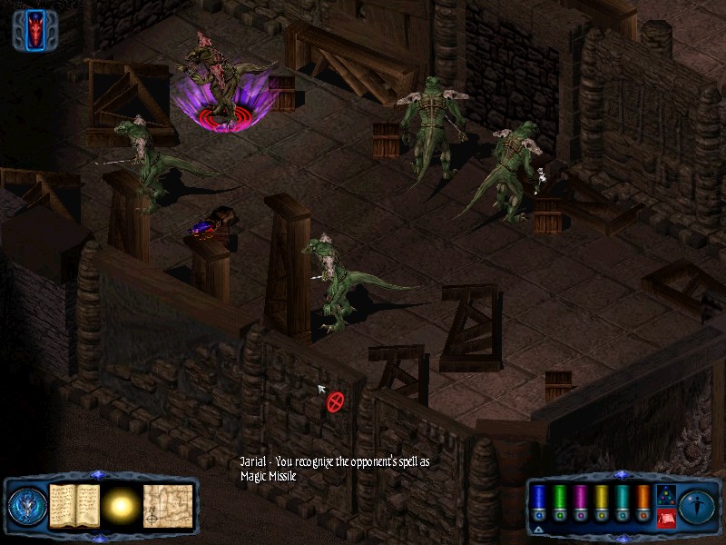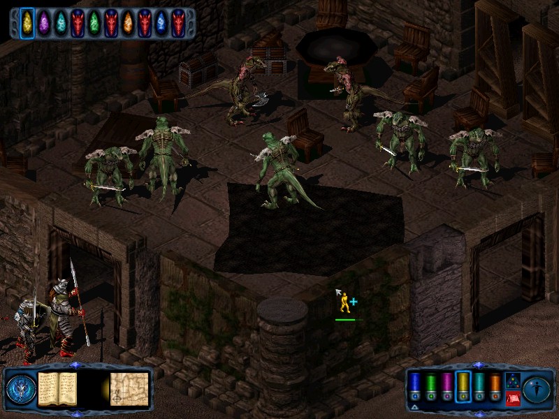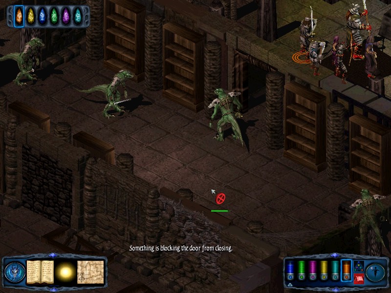 At the end of the corridor turn your party west, travelling across the large open area, through the rooms beyond, until you reach the second door in the northern wall beyond. Cross the room to exit via the north door, turning your party east for a few steps. You will soon spot another door to the north. Open it to confront 4 lizardfolk scavengers and a lizardfolk taskmaster. This group drops some gold when defeated. On the floor is this room there is a scroll of dispel magic.
