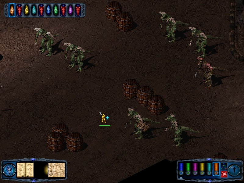 Follow the SE passage from there and you will find a door in the north wall. In the room beyond, the door east requires the brewer's key. You won't get the brewer's key for a while yet, it's back west, south past the channel of earthborn wind again, before turning east once you are beyond the door. You will quickly stumble across more lizardfolk, this time the group consists of 3 scavengers, 2 normal lizardfolk, a faith healer and a taskmaster. |