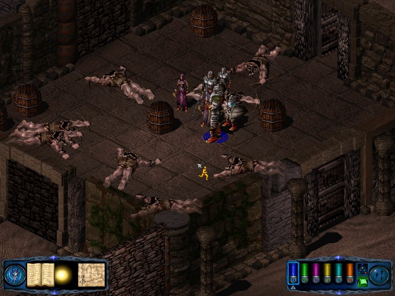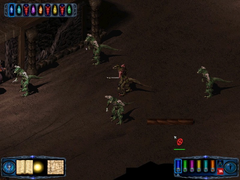 Exit those rooms and continue hugging the north wall eastwards. The next door to the north leads to a room housing steps down to the Deep Halls. At this point turn your party south to find a door in the south wall. Go through that door, then west through a second. You will find yourself in a room full of orog bodies. When you exit this room using the south door you will be attacked by 3 lizardfolk scavengers, a warrior, a healer and a taskmaster. This group drops some gold when killed. |
