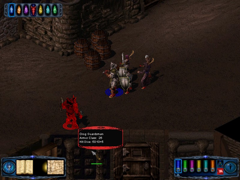 Exit this room using the south door. You will have to fight 2 orog hunters, 2 guardsmen, 2 orogs and a veteran. This group drops some gold.