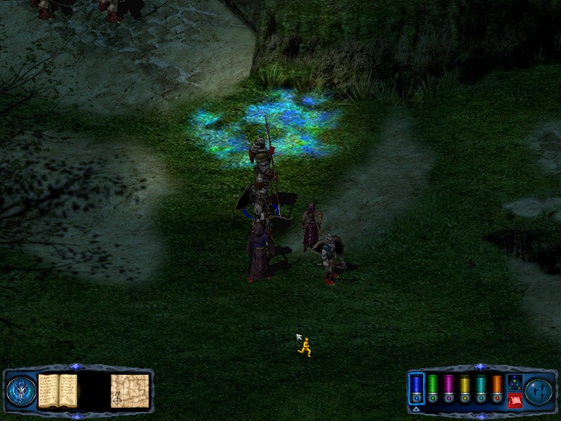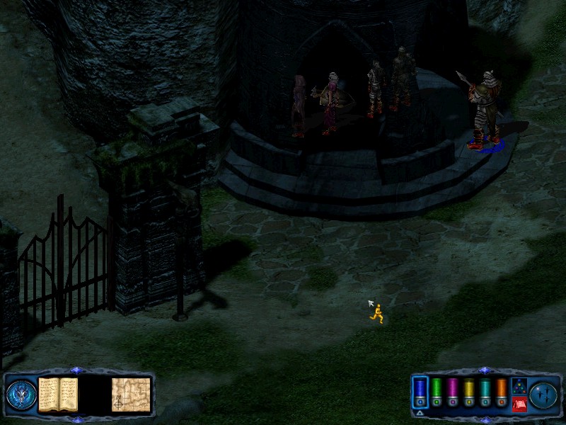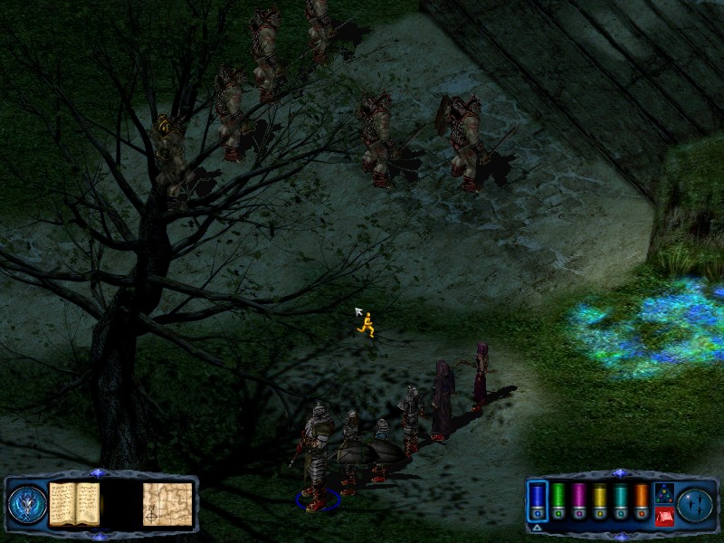 Just a few paces north of the moss a group of orcs is waiting to ambush you. When you have defeated this group, continue west until you reach the edge of the map. There is a flight of stairs just to the north. At the first corner of the stairs there are two margoyles. If you were to continue following the stairs after defeating the Margoyles you would end up in Nightingale Court. |