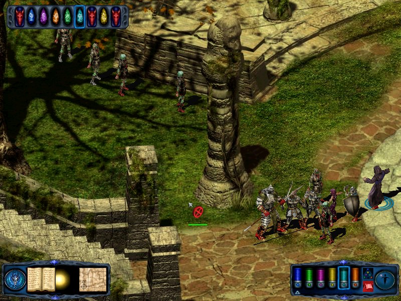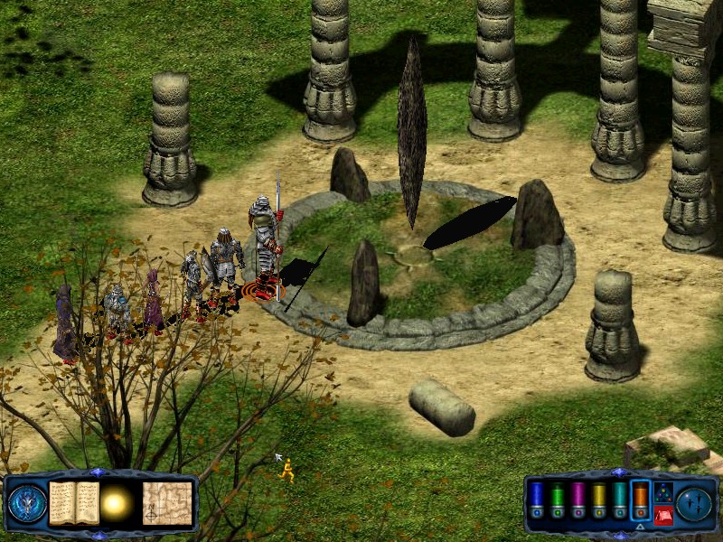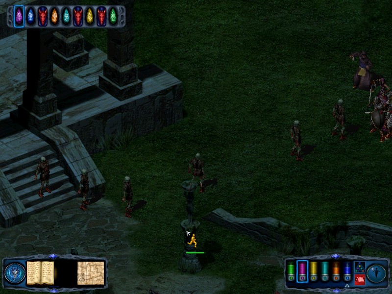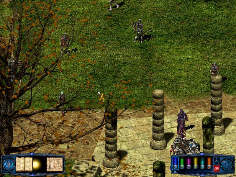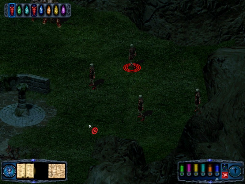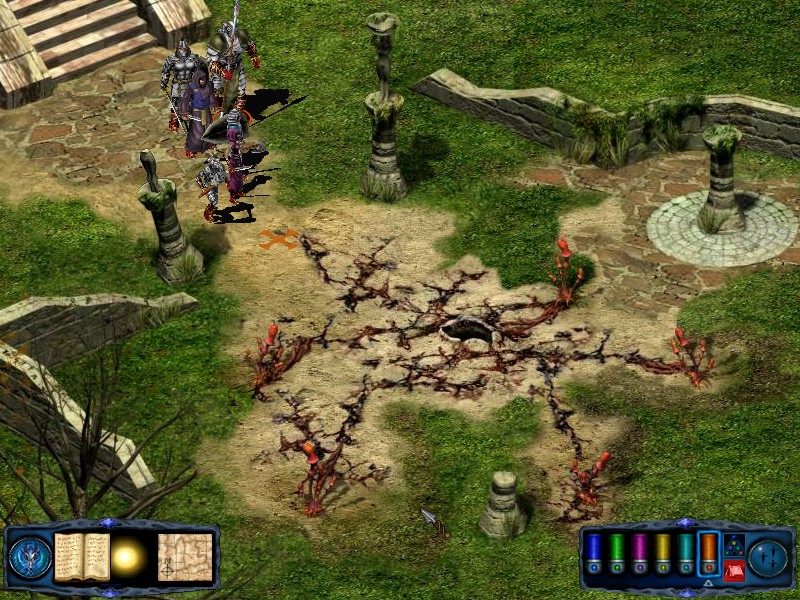 If you need to you can rest in the ruins just to the north of the thirsty ground. From the thirsty ground, travel west back to the ruined fountain. From there take the NE pass to find 5 skeleton knights and 5 skeleton lords. Kill them to receive a potion of serious healing. Just to the east of these skeletons is another spinning spire. Finally, return to the ruined fountain and turn your party north. Walk onto the paving slabs and they will collapse beneath you, depositing your party in an... |