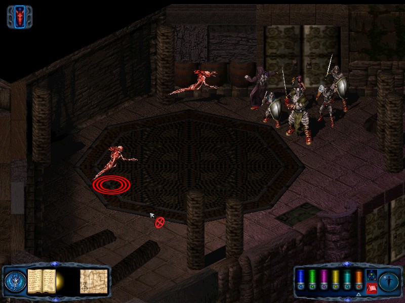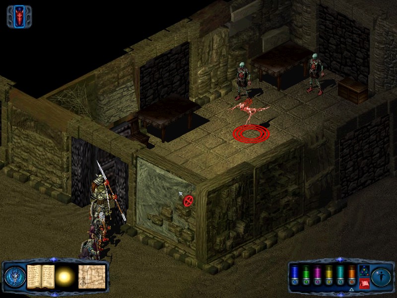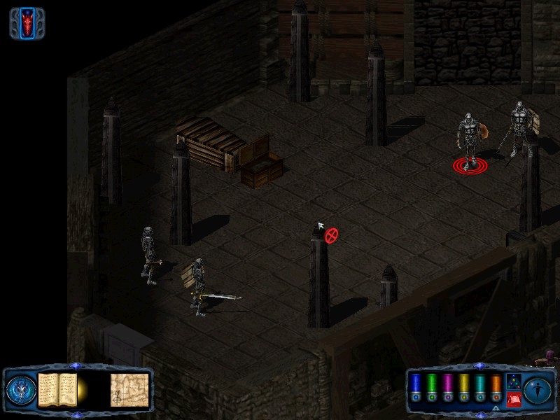 Return to the corridor and head east, then turn north until you reach a junction. From the junction you should see a door to your north. Go through it to encounter a Master Spectre. When you have killed the spectre, move into the room to the north. On the table you will find the word of singing. Return to the corridor and follow it around to the north and west until it dead ends. There should be a corridor leading away to the east. Follow it until you arrive at a door in the north wall. Go through the door to fight 4 skeleton lords. Retrieve the idolon from the chest nearby. |