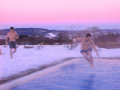 Nach solch einem Schneebad verspricht der Sprung ins warme Naß eine besondere Wohltat. | ![]() |