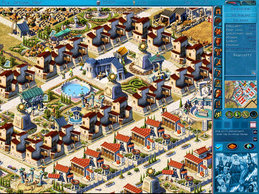 buildings: Agoras - 4 Common, 2 Grand; 6 Granaries, 24 Wheat farms,