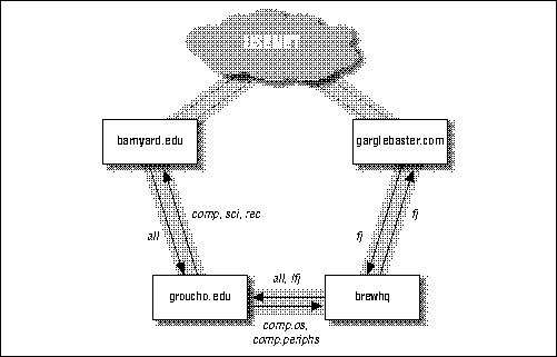 Auch auf die Gefahr hin, daß sich das dumm anhört, können Sie das Usenet als einen Zusammenschluß separater Sites betrachten, die untereinander Usenet-News austauschen. Um selbst zu einer Usenet-Site zu werden, müssen Sie nur eine andere Usenet-Site finden und mit deren Besitzern und Verwaltern eine Vereinbarung darüber treffen, daß mit Ihnen News ausgetauscht werden. Das Weitergeben von News an eine andere Site wird auch als Feeding bezeichnet.