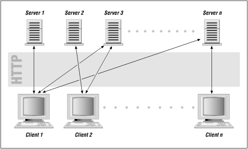 In practice, many clients can be using the same server at the same time, and one client can also use many servers at the same time (see Figure 1-2).