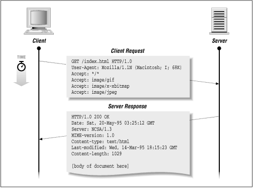 GET /index.html HTTP/1.0User-Agent: Mozilla/1.1N (Macintosh; I; 68K)Accept: */*Accept: image/gifAccept: image/x-xbitmapAccept: image/jpegThe server responds with:
