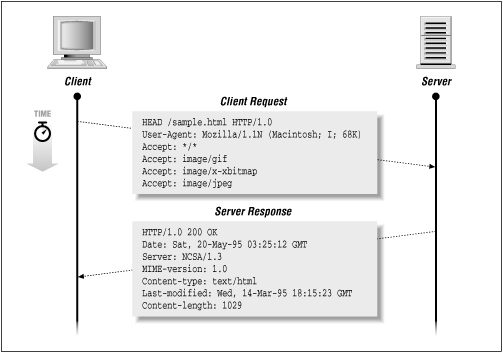 HEAD /sample.html HTTP/1.0User-Agent: Mozilla/1.1N (Macintosh; I; 68K)Accept: */*Accept: image/gifAccept: image/x-xbitmapAccept: image/jpegThe server responds with: