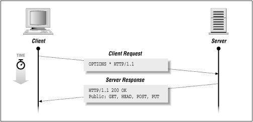 Figure 3-3 shows an example HTTP transaction using the HEAD method. The client sends: