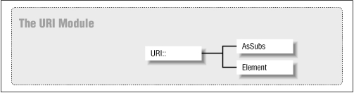 The URI module contains functions and modules to specify and convert URIs. (URLs are a type of URI.) There are only two classes within the URI module, as shown in Figure 5-5.