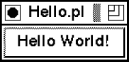 Pushing the "Hello World" button will exit the program, and your window will then go away. Line 1 tells the shell to invoke Perl to interpret the rest of the file, and Line 2 then tells Perl that we need to use the Tk module. Line 3 tells the system that you want it to build you a generic, standard window. Line 4 creates a button, displays it (using the pack method), and gives the button something to do when pushed.